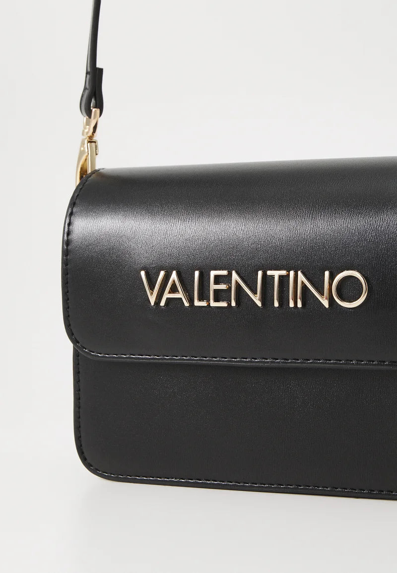 Deze elegante zwarte Valentino schoudertas is een echte eyecatcher. Gemaakt van glad kunstleer met een luxe gouden VALENTINO-logo op de flap. Perfect voor zowel dagelijks gebruik als een avondje uit.