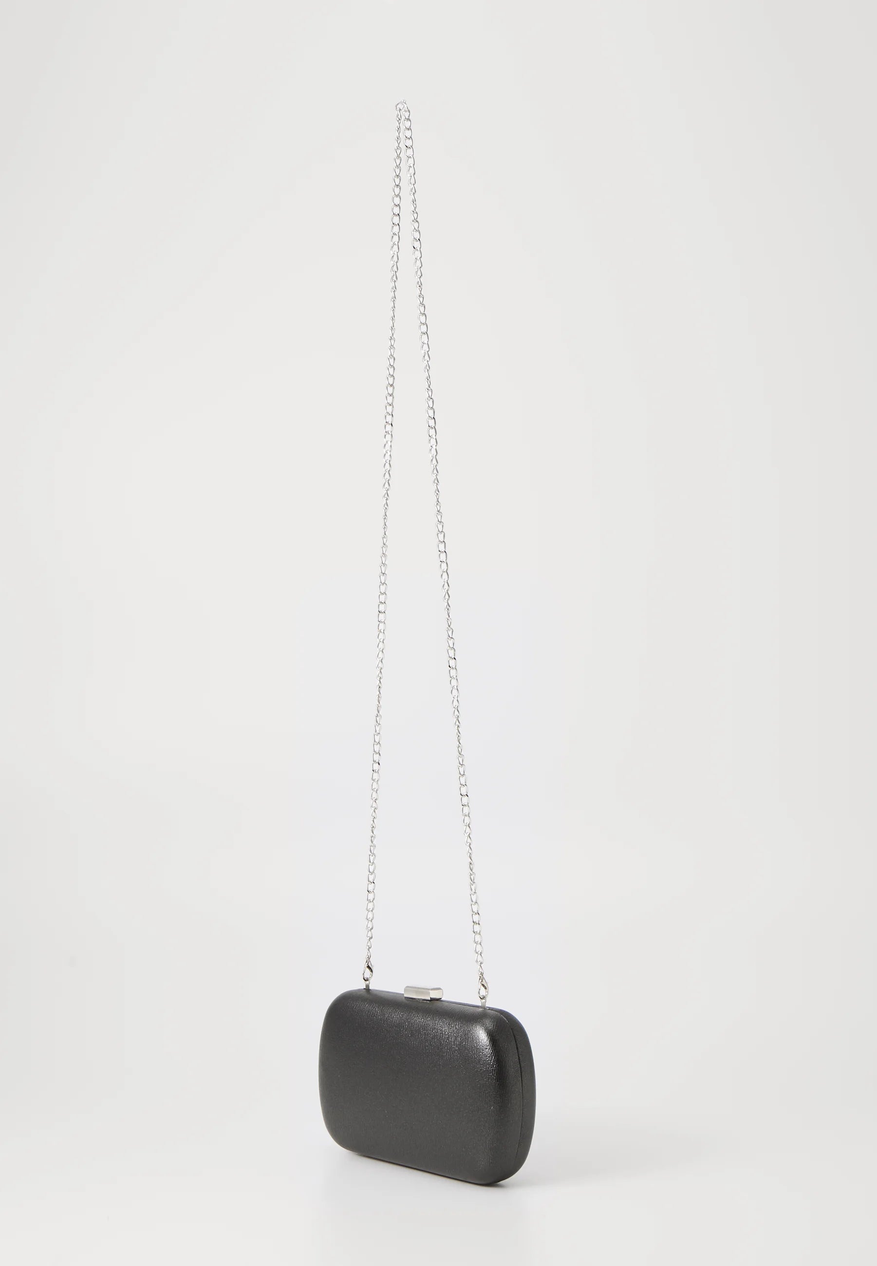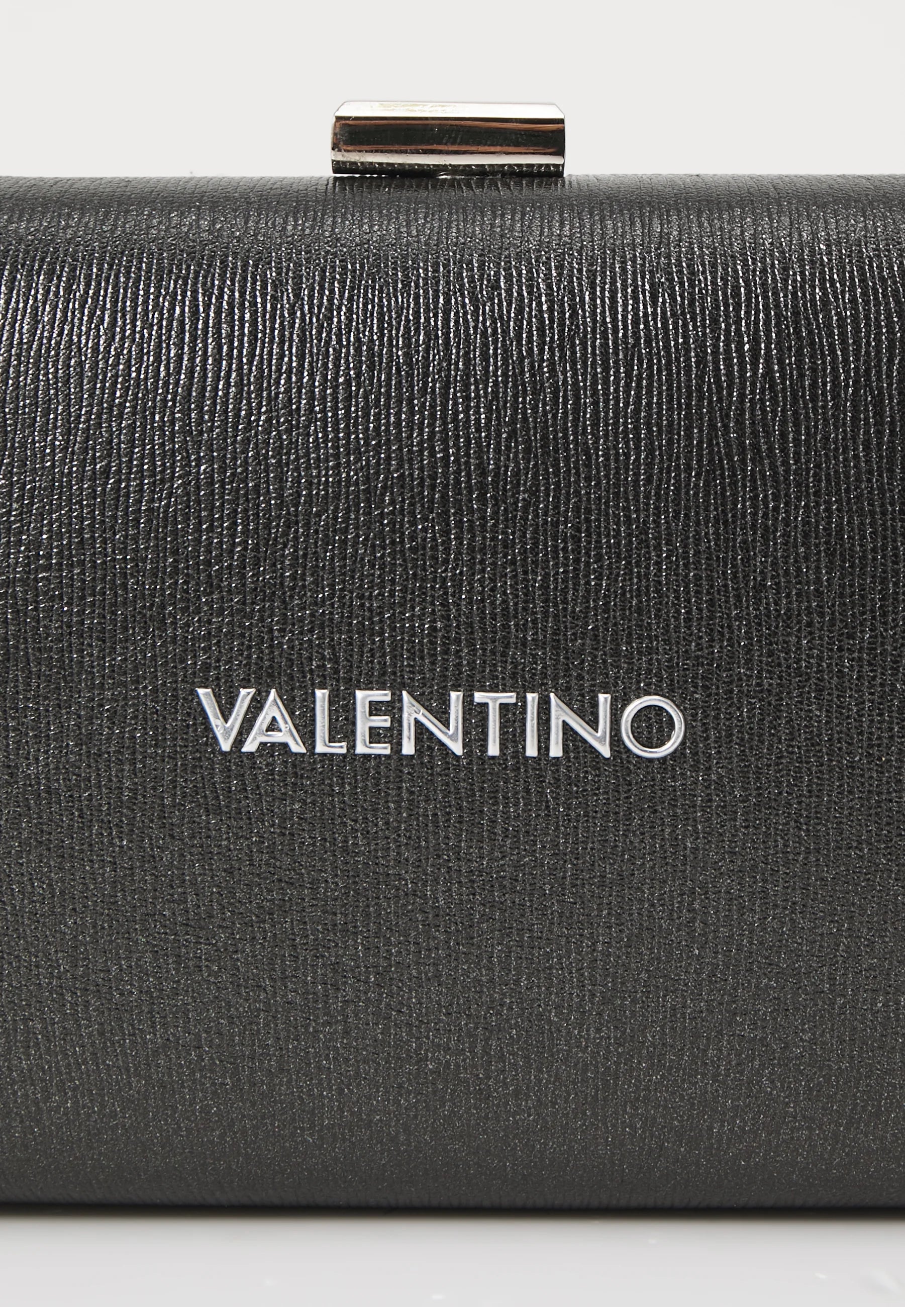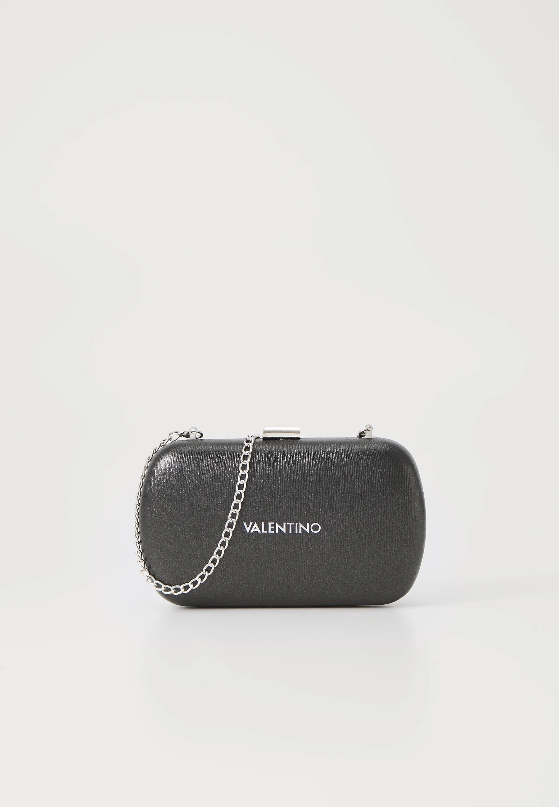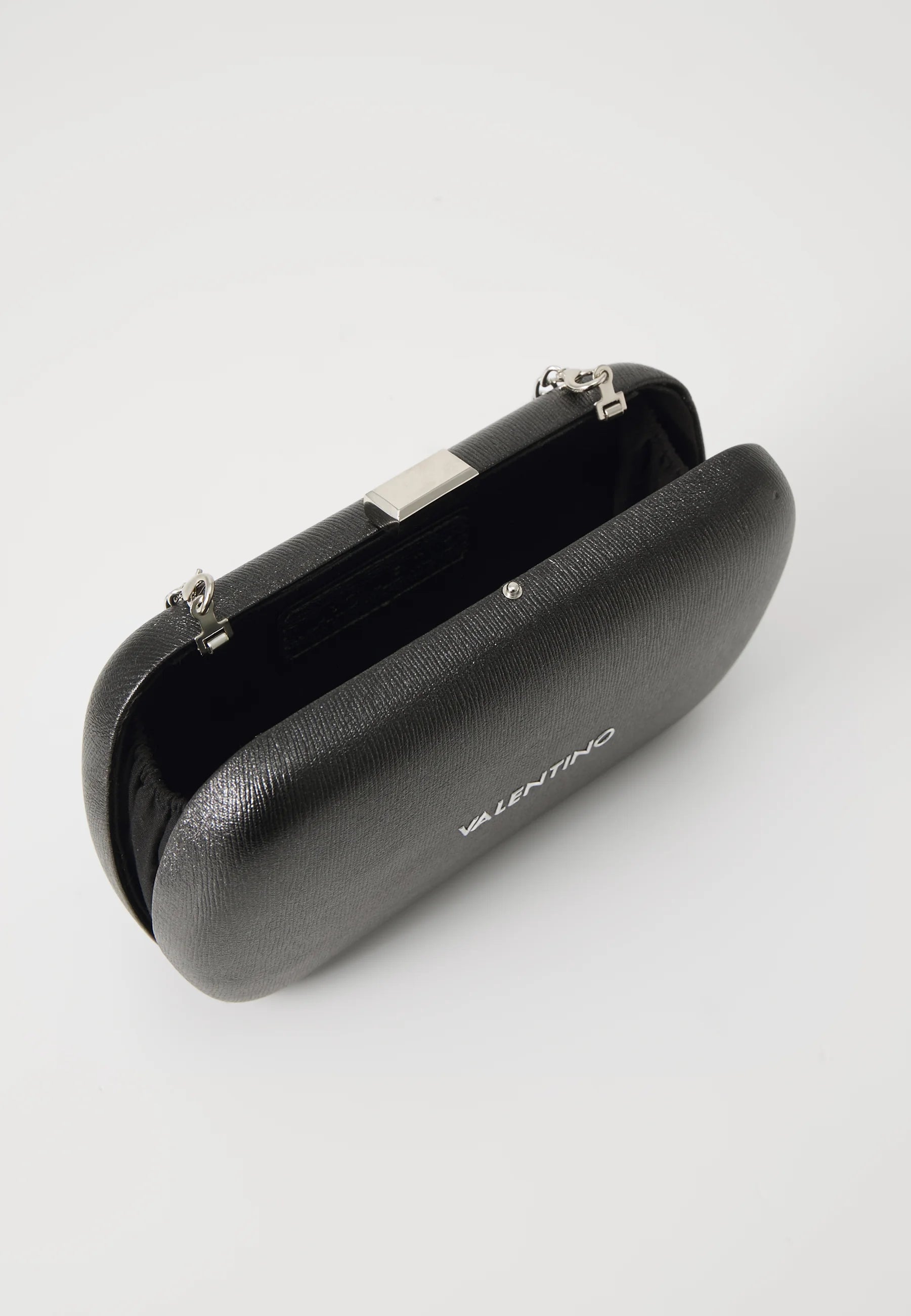 Valentino Aroma Nero Clutch – Zwarte Handtas met Zilveren Ketting & Metallic Details